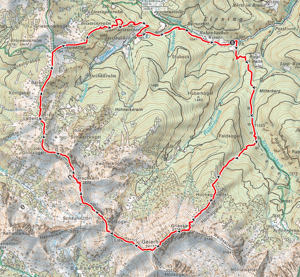 6 Gipfelrunde aus dem Liesing-Graben (Karte)